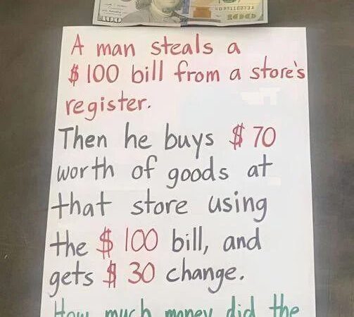 A man steals a $100 bill from a store’s register. Then he buys $70 worth of goods at that store using the $100 bill and gets a $30 change. How much money did the store lose?