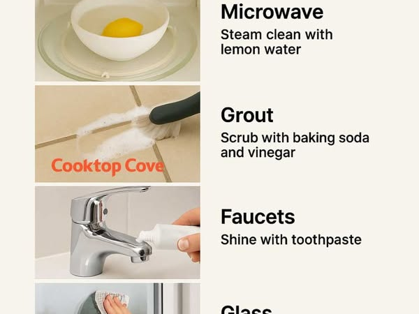 Grout is hard to clean, but a paste made from baking soda and vinegar can work great. Put the paste on the grout lines and let it sit for 15 minutes. Use an old toothbrush to scrub the grout, then rinse with warm water. The baking soda’s abrasiveness and the vinegar’s acidity help remove dirt and stains effectively.
