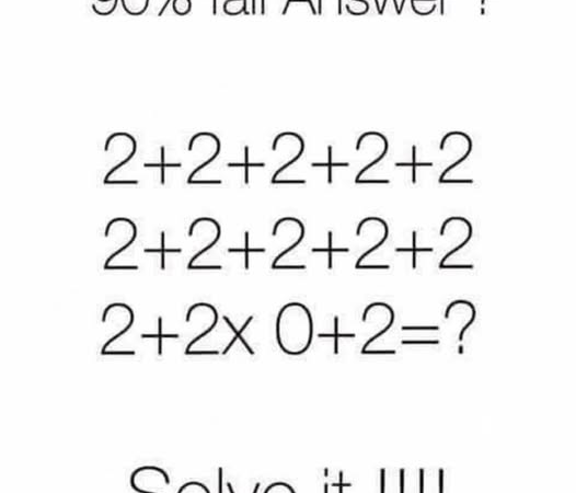 Here’s the kicker: 90% of people can’t answer this one correctly! I’m about to throw a school-level math problem your way. But if you graduated years ago, it won’t be a walk in the park. As we age, it’s easy to forget the order of operations.