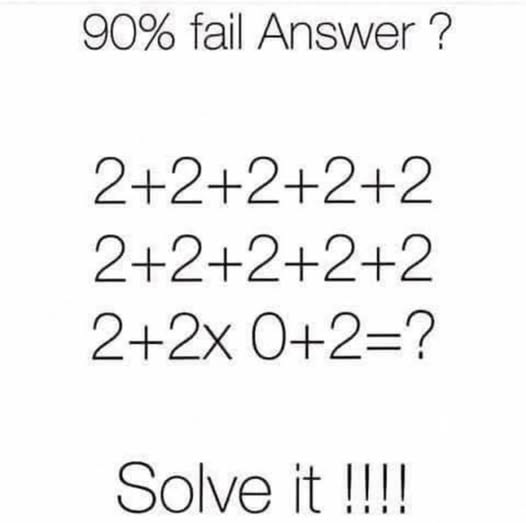 Here’s the kicker: 90% of people can’t answer this one correctly! I’m about to throw a school-level math problem your way. But if you graduated years ago, it won’t be a walk in the park. As we age, it’s easy to forget the order of operations.