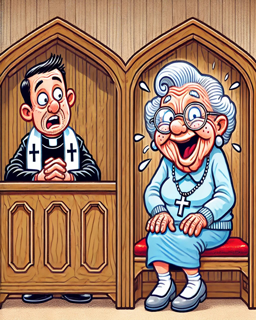 94-year-old Grandma Ethel walks into a church and heads straight for the confession booth.