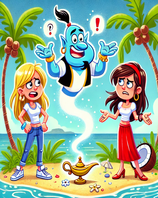 Picture this: A blonde, a brunette, and a redhead are stranded on a deserted island. After weeks of surviving on nothing but coconuts and fish, they stumble upon a magical lamp. Naturally, they give it a rub, and out pops a genie!