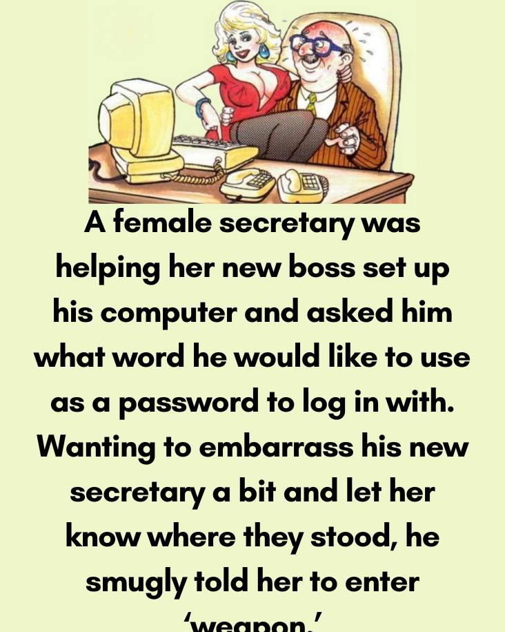 A new female secretary was helping her boss set up his computer. She asked him what password he wanted to use to log in.