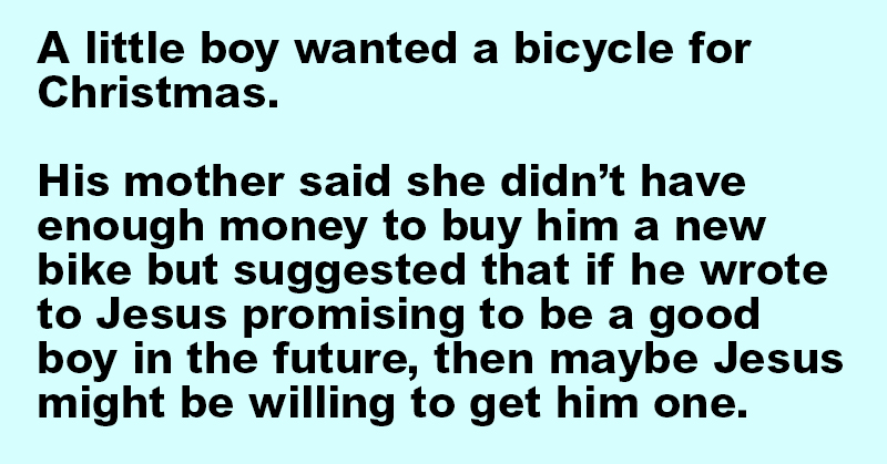 His mom, short on cash, told him, “Why don’t you write to Jesus? Promise to be a good boy, and maybe He’ll get you one.”