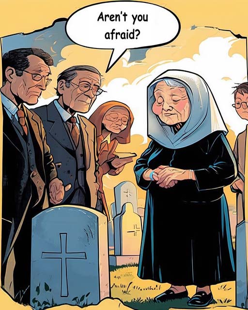 After the funeral, the neighbors, still uneasy, asked the widow, “Aren’t you afraid he might actually dig his way out and come after you?”