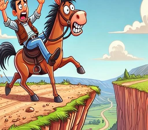 He remembers what he has to say to make the horse stop just five feet from the edge and yells: “HEY HEY!”