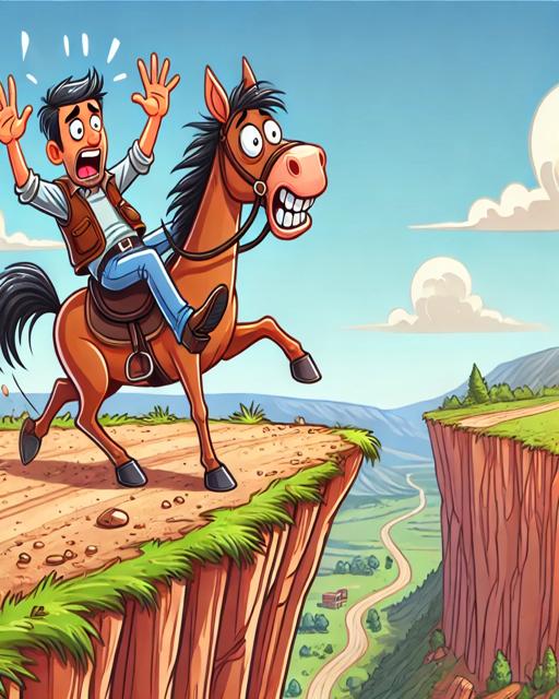 The horse skids to a halt, with just an inch to spare before a sheer drop of hundreds of feet.