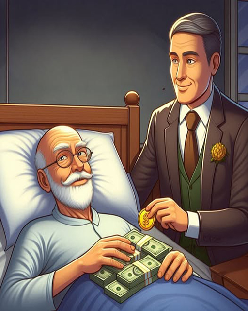 A wealthy old man was lying on his deathbed when he realized—he’d never made a will! So, he immediately called his lawyer to draft one.