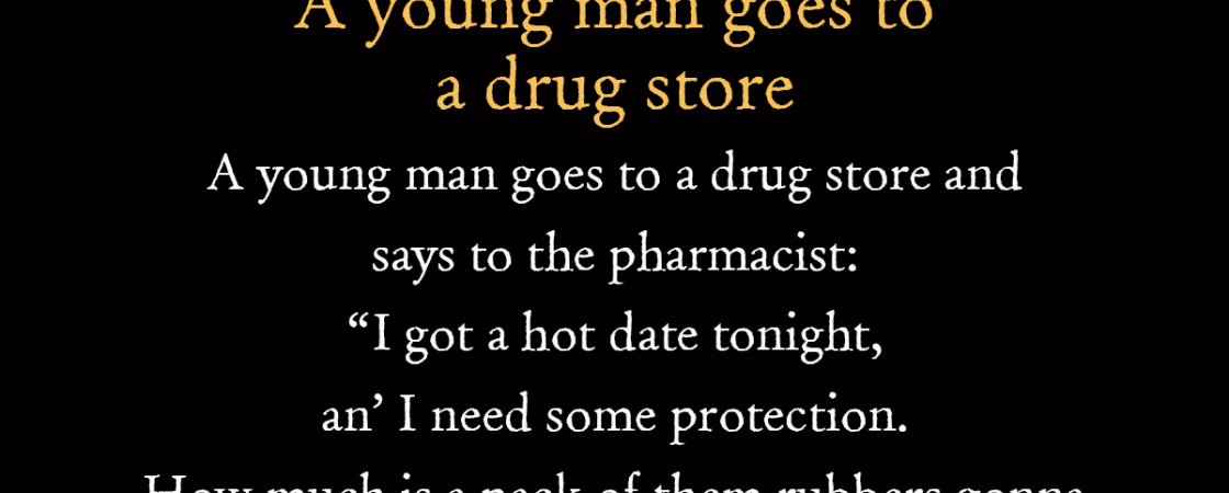 A young man goes to a drug store and says to the pharmacist: