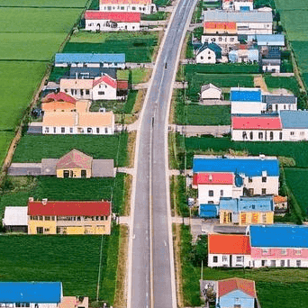 And it’s easy to see why. From above, the village looks like a patchwork quilt of colors—fields of grain, rapeseed, and various crops, each different from the next. The unique layout makes for some pretty stunning photos.