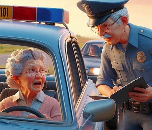 An elderly couple was driving across the country, with the wife behind the wheel. Suddenly, a highway patrol officer pulled them over.