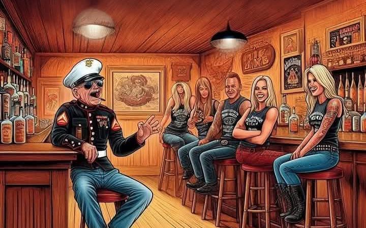 An old, blind Marine accidentally stumbles into an all-girl biker bar, completely unaware of his surroundings.
