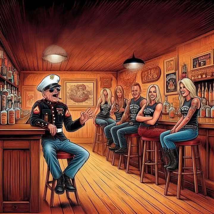 An old, blind Marine accidentally stumbles into an all-girl biker bar, completely unaware of his surroundings.