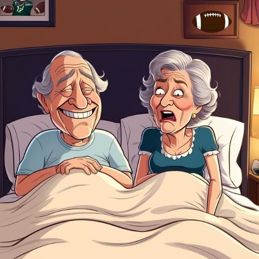 An elderly couple had been married for 50 years. Every single morning, without fail, the husband would let out a massive fart as soon as he got out of bed—and then laugh like a maniac.