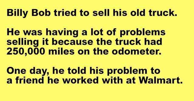 Billy Bob was desperate to sell his old truck. Problem was, that rust bucket had 250,000 miles on it, and nobody wanted to touch it.