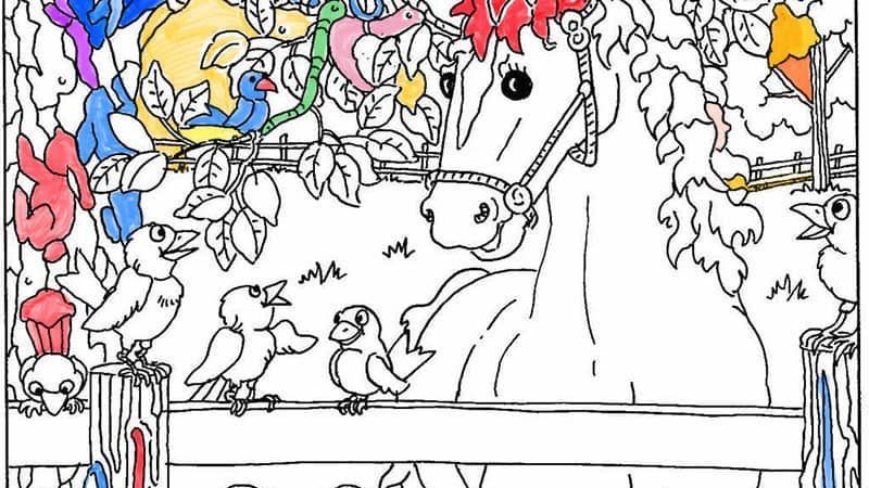 At first glance, it looks like a simple photo of a tree with a horse and some birds. But wait—there are 4 sneaky items hiding in plain sight: a duck, a rabbit, a spoon, and a cupcake!