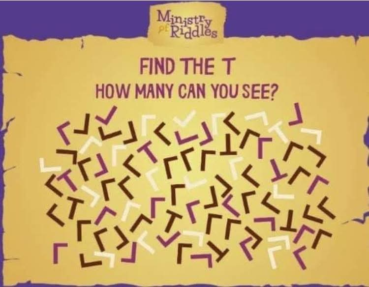 In a world where we scroll through content at lightning speed, sometimes it’s the simplest visual puzzles that make us pause—and look again. One such viral brain teaser asks a straightforward question:“Find the T. How many can you see?”