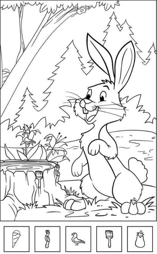 Hidden in this busy illustration are five sneaky objects—an ice cream cone, a watch, a bird, a brush, and an eggplant. Sounds easy, right? Think again. Each one is cleverly disguised in the scene, blending into patterns, textures, or objects you’d never expect.