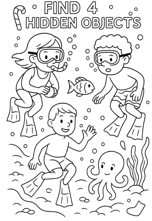 Somewhere in this charming black-and-white picture, four ordinary objects are tucked away like mischievous little surprises: