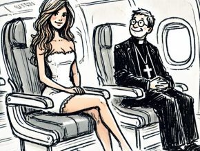 A distinguished lady on a flight from Switzerland found herself sitting next to a kind-looking priest. “Father, may I ask you for a favor?” she whispered. “Of course, my child. How can I help?” he replied. “I bought an expensive, high-tech hair remover, but I’m way over my duty-free limit. …
