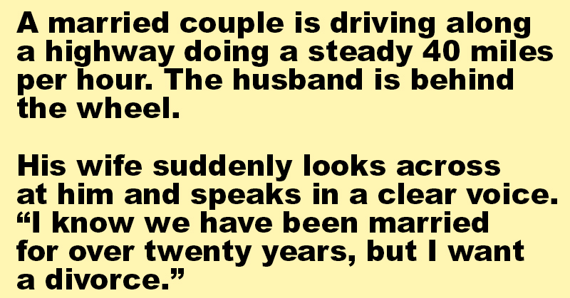 Out of nowhere, his wife turns to him and says in a clear, firm voice: