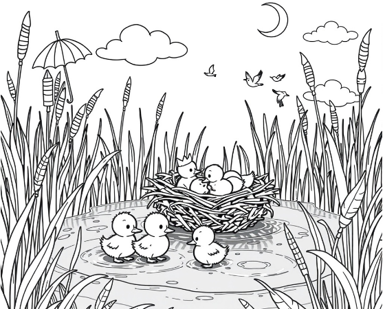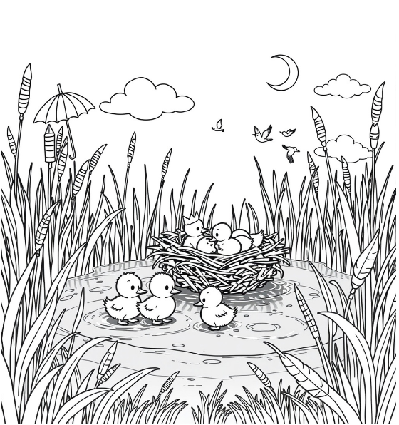 There it is! The crown was cleverly tucked in [insert the specific location in the image, such as “just above the duck’s wing” or “hidden in the grass”].