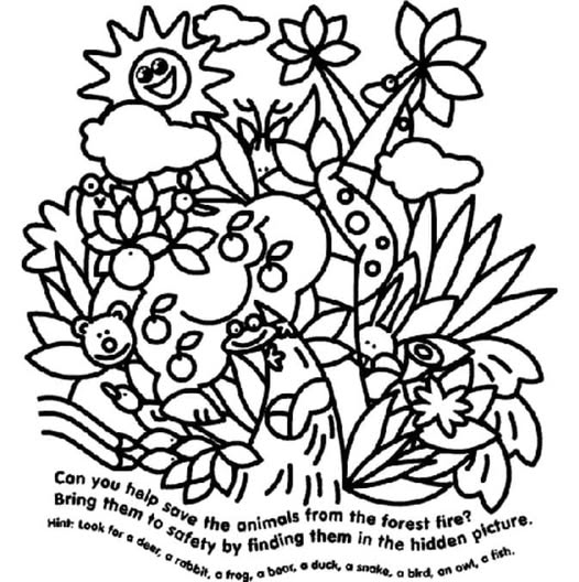 Hint: Look for a deer, a rabbit, a frog, a bear, a duck, a snake, a bird, an owl, a fish.