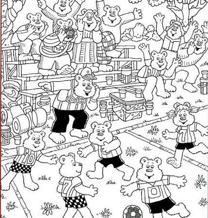 Somewhere in this picture, hidden among the bears, are five objects: a Bird, a Ladle, an Iron, a Dragonfly, and a Pencil.