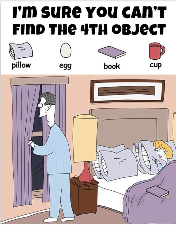 Ready for a brain workout? Take on this seek-and-find puzzle set in a cozy bedroom scene. Your mission: spot the 4 hidden items— a book, an egg, a cup, and a pillow—hidden in plain sight.