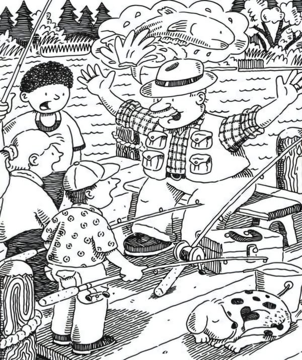 The entire image is black and white, meaning the hidden objects are very well hidden.