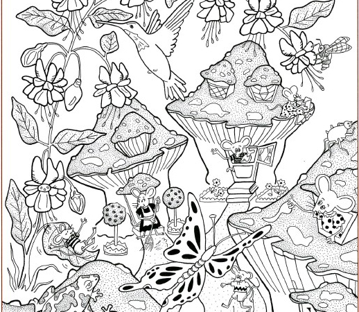 This black – and – white picture is packed with hidden items. Somewhere in it, there’s a lollipop, a saucepan, a cupcake, a light bulb, and a strawberry hiding.