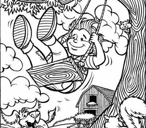 Now, look at the picture. There’s a boy swinging and his dog nearby. Can you spot the bat in this picture?