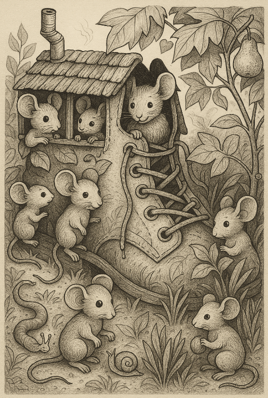 In the detailed drawing below, there’s a cozy little world where mice live inside an old boot. But hidden among the leaves, laces, and furry friends are four sneaky items: