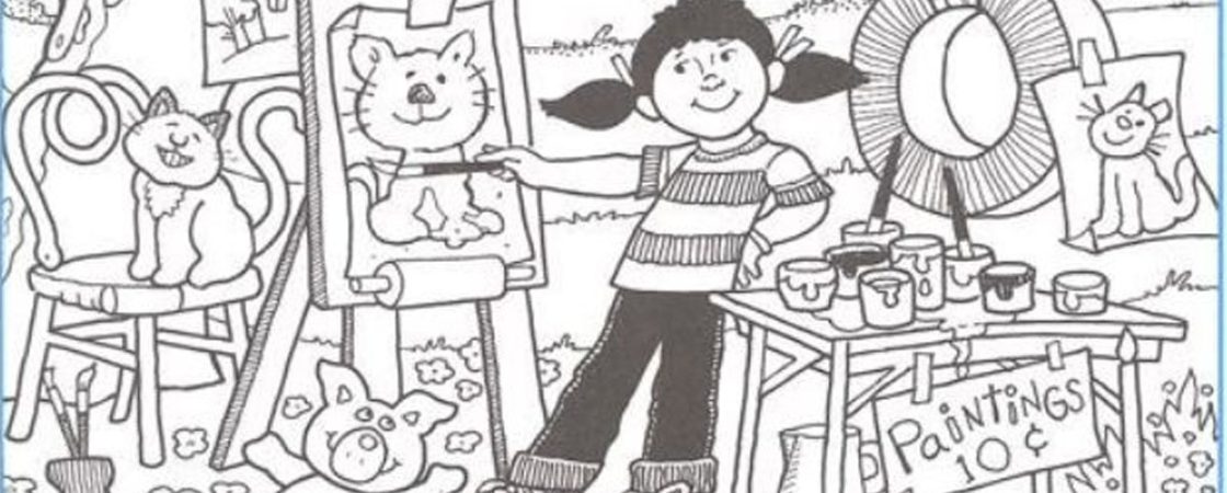 In this picture find: golf club, pennant, mug, mitten, wrench, paintbrush, heart, needle, musical note, dog’s head, funnel, T-shirt, domino, rolling pin, crescent moon, snake, carrot, fish, squirrel, candle.