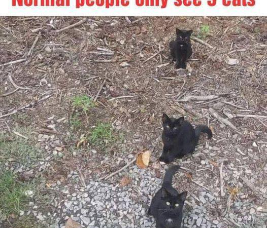 This tricky photo was originally shared on Reddit by a user named KittyInALabCoat. Her father took what he thought was a simple picture of three black kittens—but when the family reviewed the image at home, they discovered another cat hidden in plain sight! ?