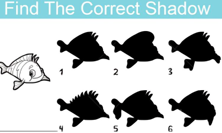 Observation puzzles like this require patience and a keen eye for detail. Each shadow option has subtle differences, and only one matches the fish exactly.