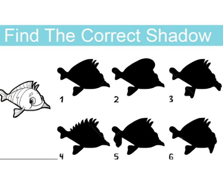 Observation puzzles like this require patience and a keen eye for detail. Each shadow option has subtle differences, and only one matches the fish exactly.