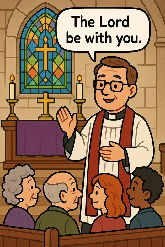 But, with the modernizing of the liturgy, the minister now says, “The Lord be with you,” and everyone responds with, “And also with you.”