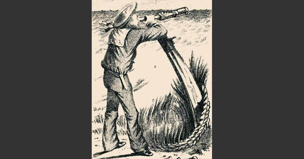 A classic photograph depicting a sailor peering into the distance through a telescope has been circulating on the internet.