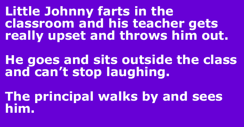 So, Little Johnny lets one rip in class, and his teacher is not having it. She kicks him out in a flash! Johnny heads outside, but he can’t stop laughing.