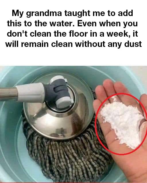 My grandma taught me to add this to the water. You know, even if you don’t clean the floor for a whole week, it’ll remain clean and dust-free.