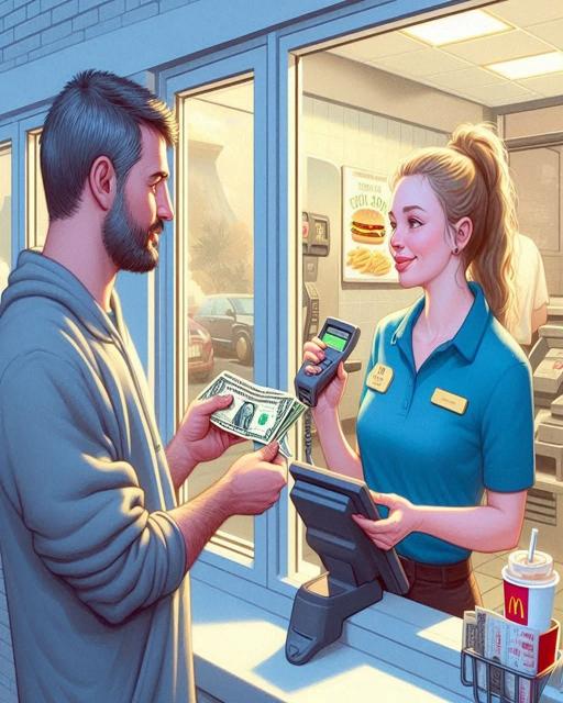 My spouse and I went through the Burger Barn drive-thru, and I handed the cashier a $10 bill.