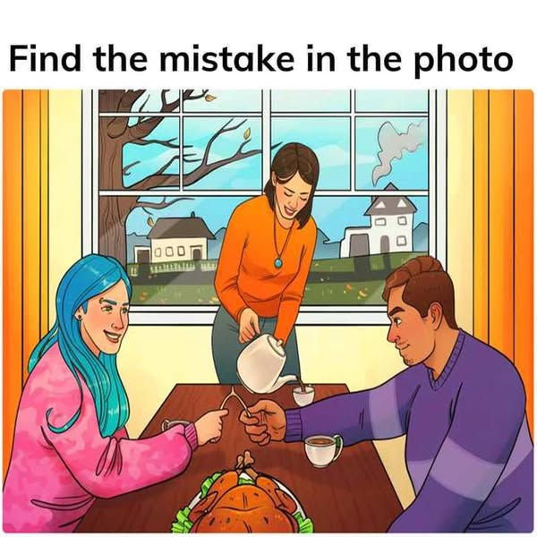 The picture above shows a tea – table scene with a couple chatting. At first, everything seems normal, but there’s a mistake hidden in it. Your task is to find this mistake within 6 seconds. This brain – teaser is a great way to test your attention to detail and intelligence.
