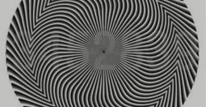The illusion features a striped gray and black circle hiding a number within. What number do you see?