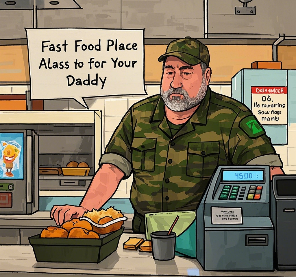 Our fast food place asks for your name when taking an order so they can yell it out when your food is ready. One particular customer, a dude in his forties wearing camo, decided to abuse the rule. When asked, he told the cashier his name was ‘Daddy’.
