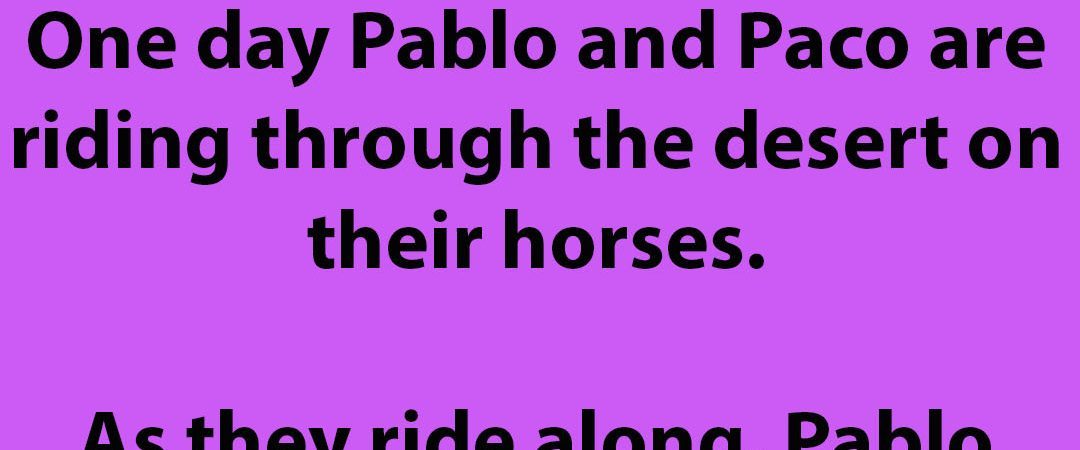 Pablo and Paco were riding their horses through the dusty desert, just two cowboys out for a long ride.