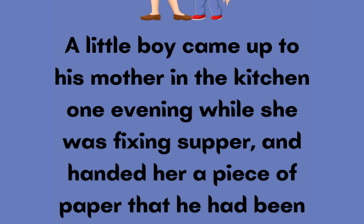 One evening, while a mother was in the kitchen preparing dinner, her little boy walked up to her, holding a piece of paper he’d been working on.