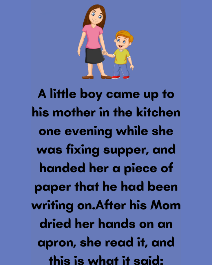 One evening, while a mother was in the kitchen preparing dinner, her little boy walked up to her, holding a piece of paper he’d been working on.