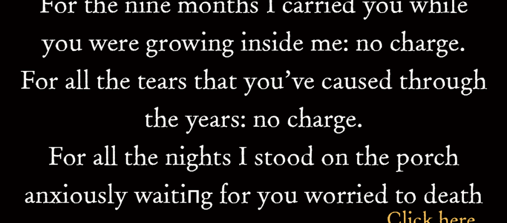 The list went on, detailing every moment she had given her love, patience, and time without asking for anything in return. She looked up at him and simply said, “Son, the cost of my love is $0.00.”