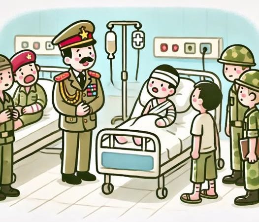 The general asks: “Is there anything else we can do for you?” and the soldier says: “No sir, the nurses are doing the best they can.” The general once again seems satisfied, thanks him for his service and moves on to the next man.